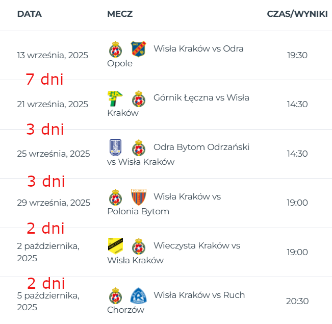 W 23 dni Wisła Kraków zagra 6 meczów. Pod koniec tego maratonu będą dwie przerwy tylko po dwa dni między spotkaniami.
