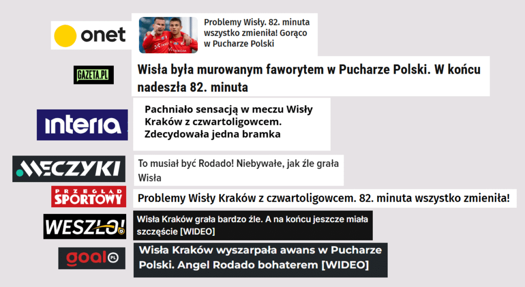 30 strzałów. 9 celnych. Spokojny awans rezerwowym składem, a w prasie larum. Mój ulubiony tytuł: “Niebywale jak źle grała Wisła”.